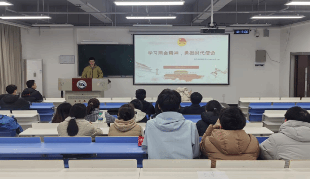 活动伊始,团支部书记以“学习两会精神,勇担时代使命”为主题进行宣讲,带领同学们系统学习全国两会的核心热点,重点解读了与青年成长、科技创新、交通强国等相关要点,鼓励同学们将个人发展融入国家发展大局,在专业学习中锤炼本领、奋勇争先。